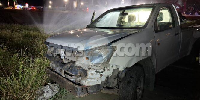 Diasabra anochi a drenta informe di un accidente na W.E.B. na Balashi, mesora a dirigi un patruya na e sitio. Na yegada di e patruya a bin compronde cu e chauffuer burachi den un pick-up tabata baha caminda bay banda robes despues bay banda drechi dal borchi trafico sigui bay kibra tubo di awa. Polis a detene e chauffeur burachi.