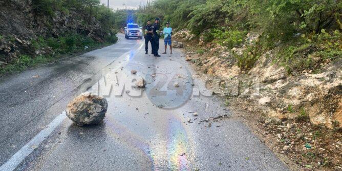 Diadomingo den oranan di mainta a drenta informe di un accidente riba e caminda di Grot di Lourdes, mesora a dirigi patruya na e sitio. Na yegada di e patruya a bin compronde cu aki lo ta trata di piedranan grandi cu lo a cay for di e grot y cu e accidente aki lo a sosode den oranan di e anochi promer unda e chauffeur lo a haya e piedranan grandi den caminda y a desvia pa un pero a bay dal den otro. Afortunadamente ningun hende a resulta herida.