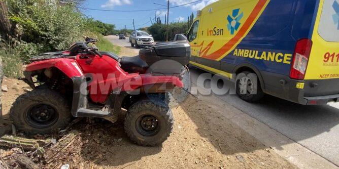 Diabierna merdia a drenta informe di un accidente cu hende herida na Hooiberg, mesora a dirigi tanto polis como ambulans na e sitio. Na yegada di e patruya a bin compronde cu aki ta trata di un accidente unda durante un tour cu quadracer un dama turista ta perde control y ta bay dal riba piedranan banda di caminda. Debi na e impacto e dama motociclista a resulta herida. Na yegada di e ambulans nan a atende e dama y a transporte pa hospital.