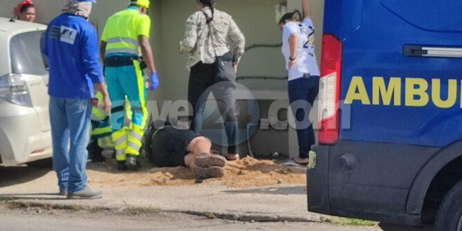 Diasabra mainta a drenta informe si xu un persona trahando den construccion a cay for di trapi den Zoutmanstraat, mesora a dirigi tanto polis como ambulans na e sitio. Na yegada di e patruya a bin compronde cu e persona haciendo trabao di construccion na un dado momento piedranan a bin abao y a benta e persona abao. Na yegada di e ambulans e persona no por a move. Cu cuidao e ambulans a lanta e homber y a pone den ambulans. Ela ser atendi y transporta pa hospital.