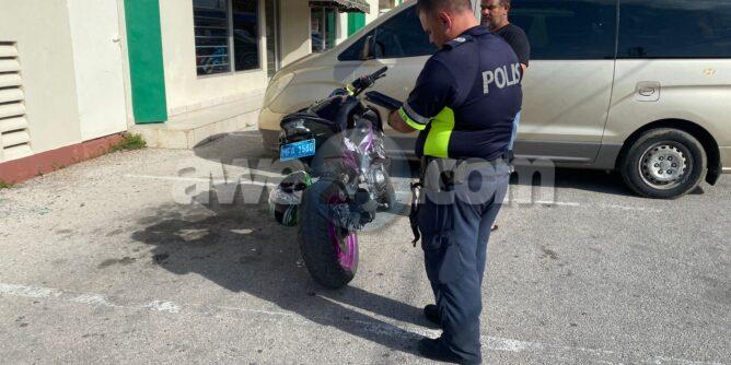 Diahuebs mainta a drenta otro informe di accidente cu hende herida esaki ta banda di Giselle na Noord, mesora a dirigi tanto polis como ambulans na e sitio. Na yegada di e patruya a bin compronde cu aki ta trata di un pick-up di Arugas cu a bira na man robes sin a duna preferencia na e brommer cu tabata pasando e na su man robes y a bay dal e bente abao. Debi na e sla y caida e motociclista a resulta herida. Na yegada di e ambulans nan a atende e victima y a transporte pa hospital.