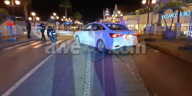 Diadomingo anochi a drenta informe di un accidente riba e brug di Renaissance, mesora a dirigi un patruya na e sitio. Na yegada di e patruya a bin compronde cu un chauffeur turista riba e brug di Renaissance no tabata por a warda e trafico mas y a dicidi pa dal un U-turn pero net na momento cu un scooter tabata bini y a pasa dal e auto den e maniobra. E motociclista no a resulta herida pero su scooter si a ricibi basta daño mientras e auto di huur a haya un rasca.