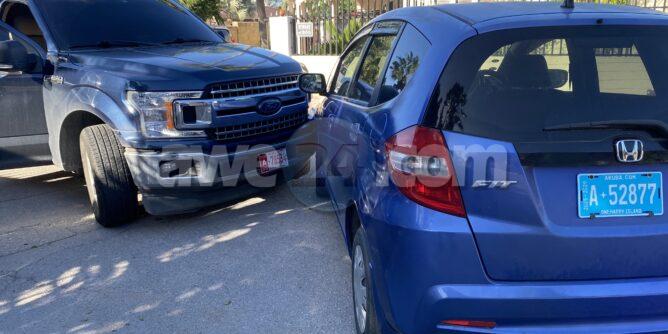 Diaranson mainta a drenta informe di un accidente na Moko, mesora a dirigi un patruya na e sitio. Na yegada di e patruya a bin compronde cu aki ta trata di un accidente unda e chauffeur di un Honda Fit a bira mucho tempran y a bay dal riba un Pick-up di direccion contrario. Afortunadamente ningun hende a resulta herida pero e pick-up Ford aki cu ta asina hopi caro e Honda fit a bay dal riba dje ocasionanando un daño basta caro riba e auto. Polis a presenta y a resolve e caso aki.