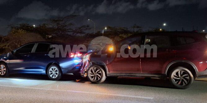 Dialuna anochi a drenta informe di un accidente banda di ex-House of Cheng na Sasakiweg, mesora a dirigi un patruya na e sitio. Na yegada di e patruya a bin compronde cu aki ta trata di un accidente unda cu e chauffeur di un s.u.v. no a regula su velocidad ni a mantene distancia a bay dal tras di e auto su dilanti. Afortunadamente ningun hende a resulta herida.