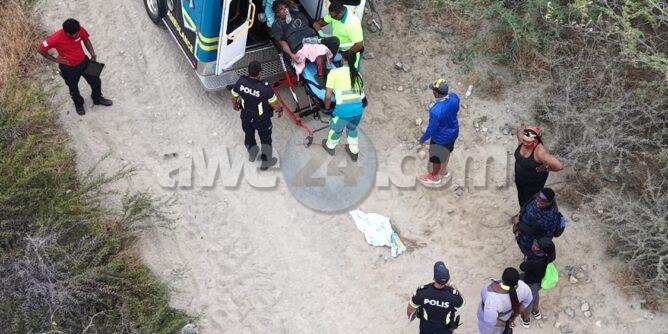 Dialuna merdia a drenta informe di un accidente cu hende herida na Sabanilla Abao, mesora a dirigi tanto polis como ambulans na e sitio. Na yegada di e patruya a bin compronde cu aki ta trata di un accidente unda un dama turista durante un tour riba quadracer e dama turista a baha caminda dal un piedra kentel y a cay herida su mes. Na yegada di e ambulans a atende e dama pero como e oficial a bini cu e pick-up e no por a transporte y a pidi pa un ambulans mes bini cu urgencia. Na yegada di e ambulans nan a pone e dama den e ambulans atende y a transporte cu urgencia pa hospital.