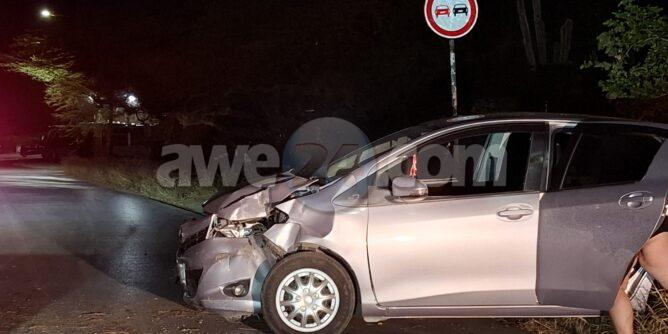 Diaranson anochi a drenta informe di un accidente pariba si airport, mesora a dirigi un patruya na e sitio. Na yegada di e patruya a bin compronde cu aki ta trata si un Toyota Vitz yegando e birada pariba di airport a perde control y a bay dal riba un troncon di mata. E impacto tabata fuerte y cu hopi daño material pero afortunadamente ningun hende a resulta herida.