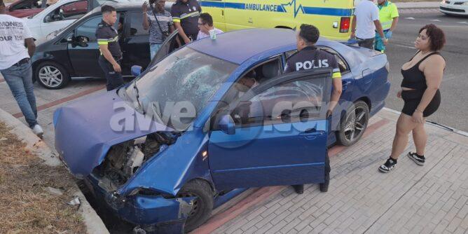 Diadomingo mainta a drenta informe di un accidente cu impacto basta fuerte na rotonde banda di Superfood, mesora a dirigi tanto polis como ambulans na e sitio. Na yegada di e patruya a bin haya un Toyota Corolla cu lo a dal riba e muraya di e rotonde y den e auto 2 hende inconciente y herida. Locuala a sosode ta cu nan tabata yegando e rotonde cu demasiado speed y pa ora primi e brake ya e no por a para mas y a bay dal fuertemente riba e muraya. Na yegada di e ambulans nan a atende ambos victima y a transporta nan ppa hospital.