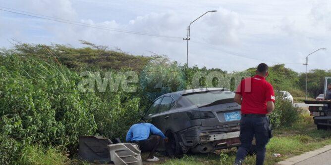 Dialuna mainta a drenta informe di cu un auto lo a bay cay den e rooi meymey di e camindanan na Sasakiweg, mesora a dirigi un patruya na e sitio. Na yegada di e patruya a bin compronde for di e chauffeur cu awa tabata yobe y ela perde control bay cay den e rooi di Bubali plas. Afortunadamente ningun hende a resulta herida.
