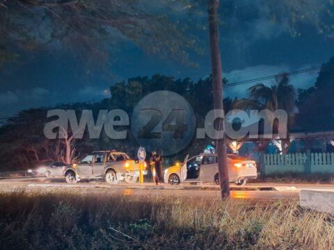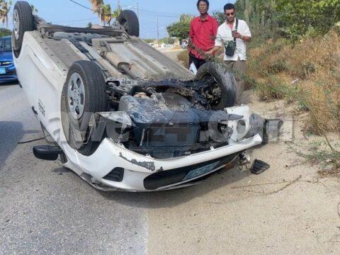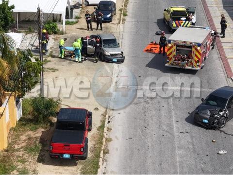 Diadomingo atardi a drenta informe di un accidente cu 2 persona herida y pega den auto banda di Bonbini Cargo na Primavera, mesora a dirigi…