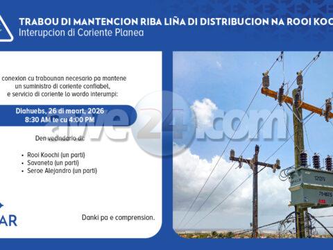 Pa sigui garantisa suministro di electricidad; ELMAR lo ehecuta trabou di mantencion den e area di Rooi Koochi y vecindario. Durante e trabou, ta necesario…