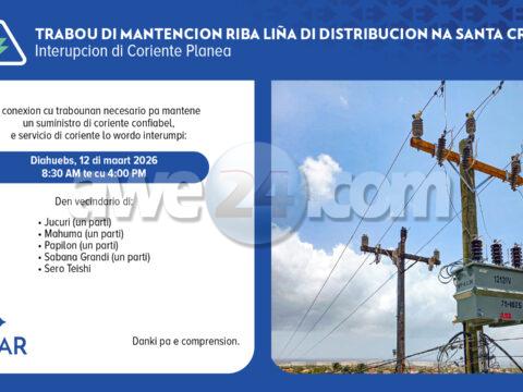 ELMAR: Trabou di mantencion riba liña di distribucion Santa Cruz riba diahuebs 12 di maart 2026