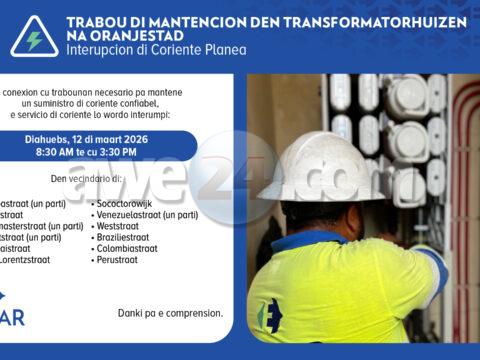 ELMAR: Trabou di mantencion den e Transformatorhuizen na Oranjestad riba diahuebs 12 di maart 2026