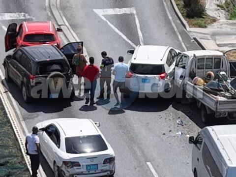 [VIDEO] Accidente entre 4 auto pasobra brake a faya y a blokia E.J. “Watty” Vos Blvd entre Sero Patrishi pa Cumana
