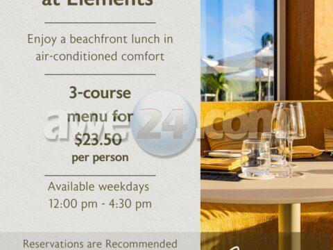 Bo siguiente lunch meeting ta merece un miho bista. Elements Restaurant ta introduci su Lunch Ehecutivo nobo. [🇦🇼🇺🇸🇳🇱🇪🇸]