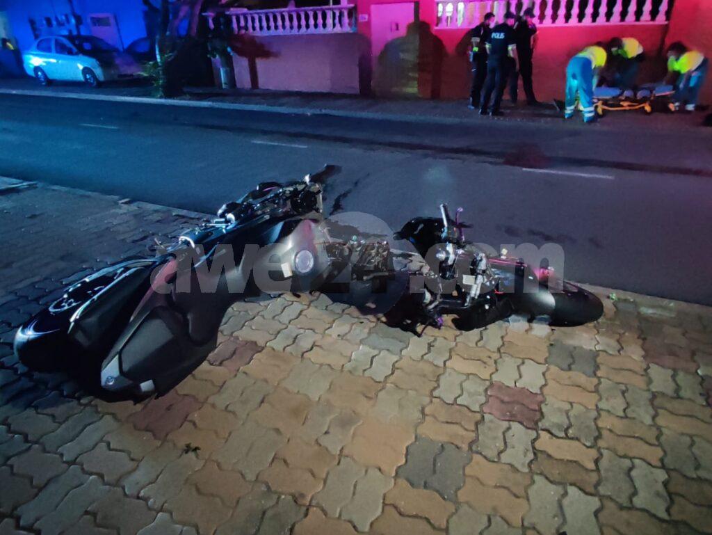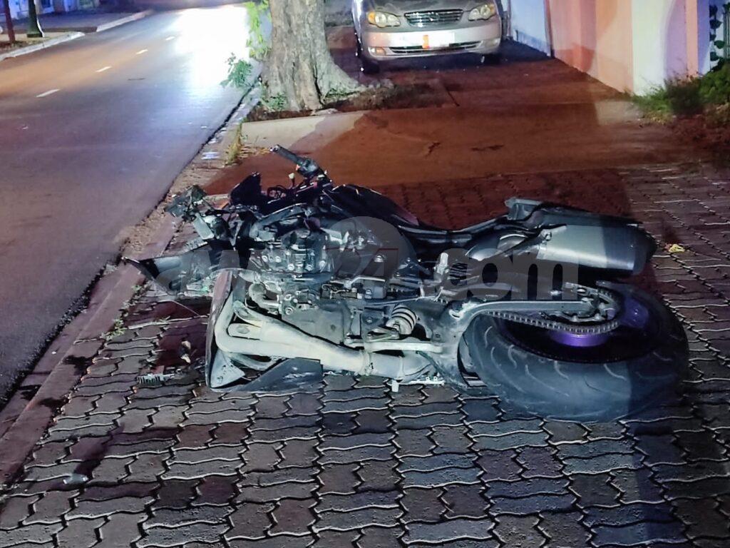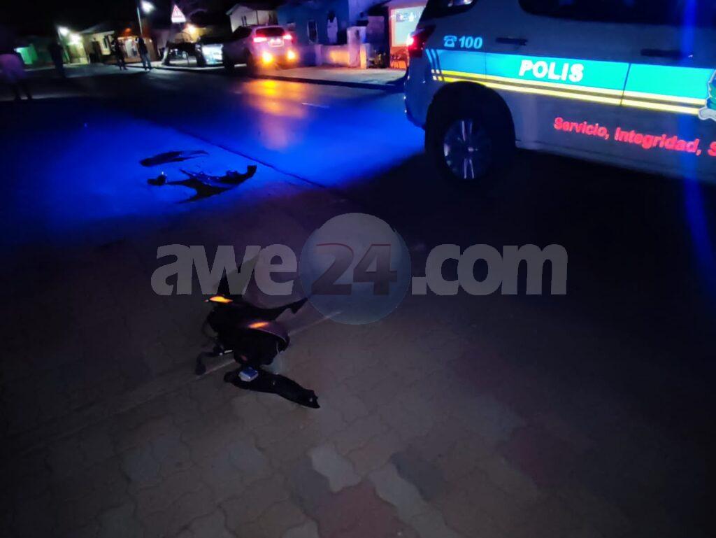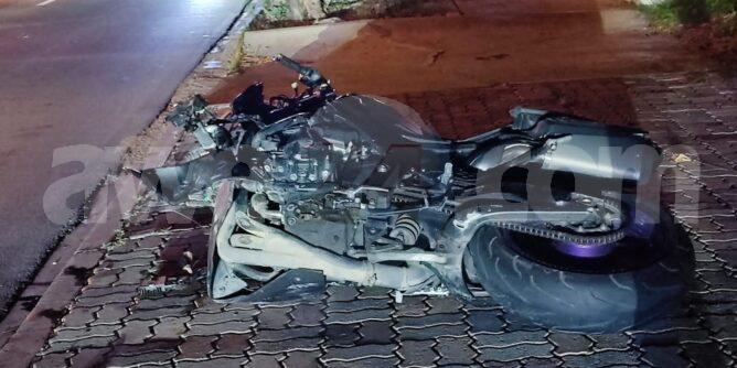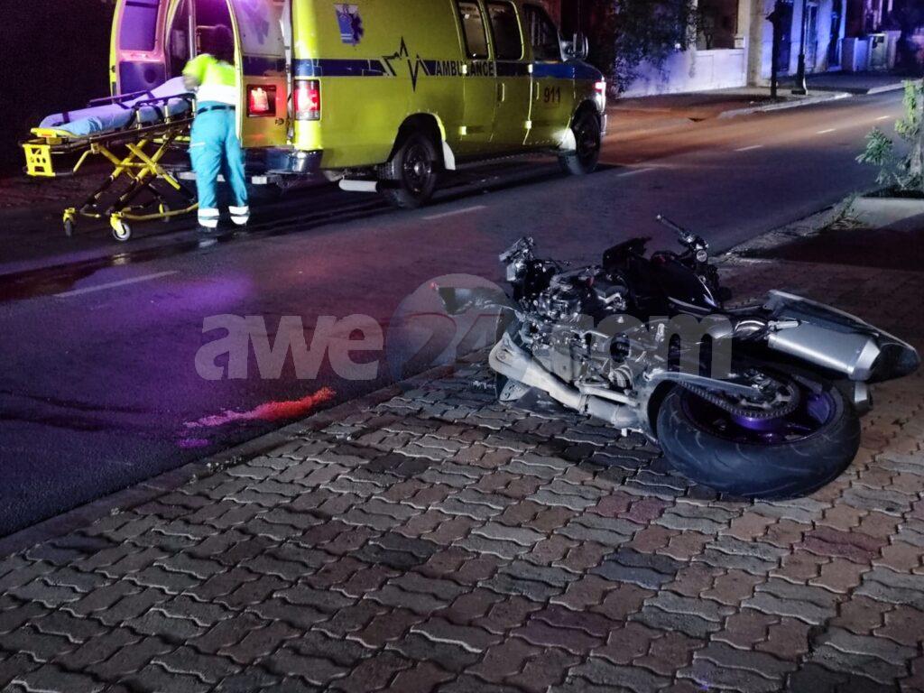 Dialuna madruga a drenta informe di un accidente cu hende herida na Bernhardstraat, mesora a dirigi tanto polis como ambulans na e sitio. Na yegada di e patruya a bin compronde cu aki ta trata di un accidente unda cu un motociclista coriendo cu velocidad halto a bay subi e drempel y a perde control bay banda robez subi acera dal riba palo di luz brommer a kibra den 2 lastra bay bon distancia y e motociclista tambe a resulta herida. Na yegada di e ambulans nan a atende e victima y a transporte pa hospital.