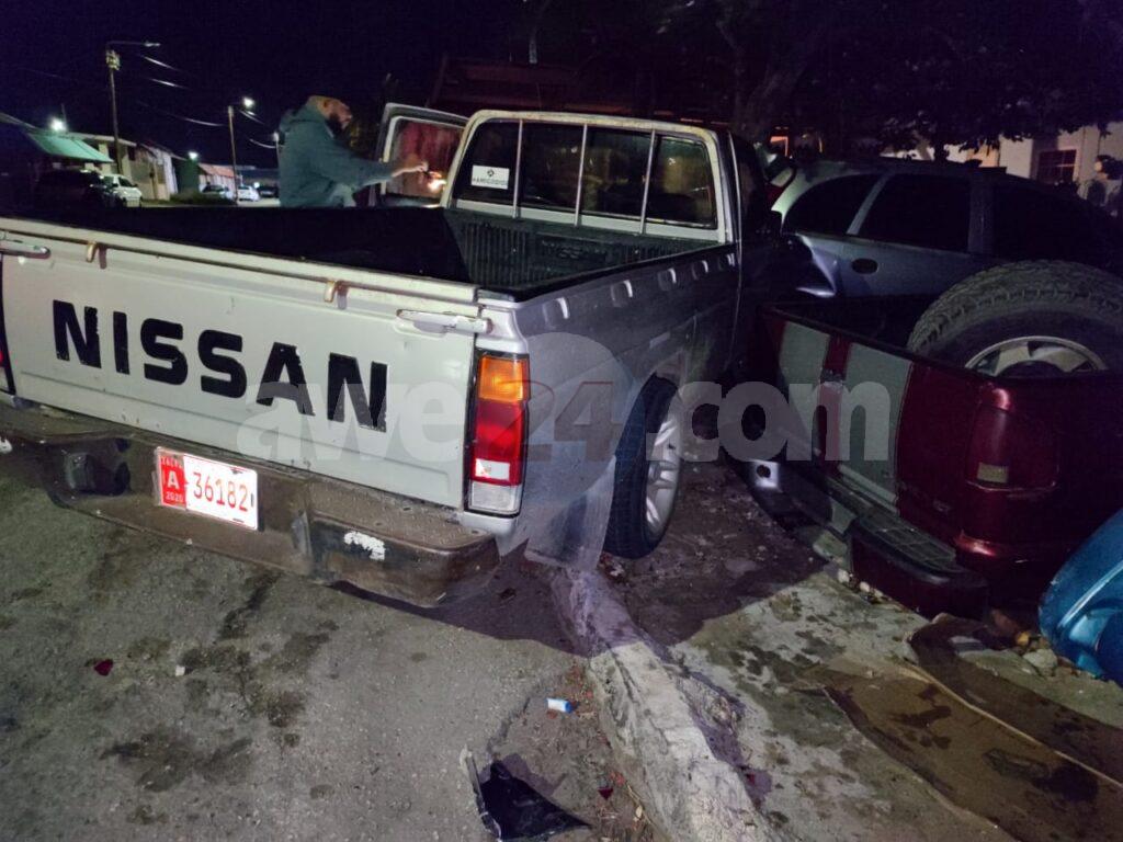 Diamars madruga a drenta informe di un accidente na Zeewijk, mesora a dirigi un patruya na e sitio. Na yegada di e patruya a bin compronde cu aki ta trata di un accidente unda e chauffeur di un pick-up a baha caminda y a bay dal riba un auto staciona sigui bay dal un otro auto staciona pega bao di un mata. Despues di esaki e chauffeur a purba bandona e sitio pero no a logra. Polis a nota cu e chauffeur ta bao influencia di alcohol y a detene pa core auto burachi y ocasiona accidente bao influencia di alcohol causando basta daño material.