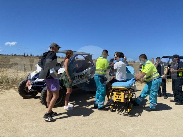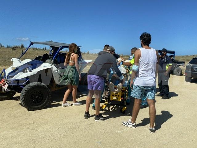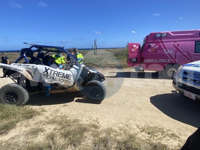 Diamars merdia a drenta informe di cu un UTV lo a bolter banda di Bushiribana, mesora a dirigi tanto polis como ambulans na e sitio. Na yegada di e patruya a bin compronde cu aki ta trata di 2 hoben hunto den un grupo di tour tabata na Boca Mahos y e tata kende ta esun responsabel pa maneha e UTV a laga su yiu cu un otro turista femenino bay cu e UTV y e hoben a bay haci maniobranan peligroso den cercania y a bolter cu e vehiculo. Ambos a resulta herida na yegada di e ambulans nan a atende ambos victima y a transpprta nan pa hospital.
