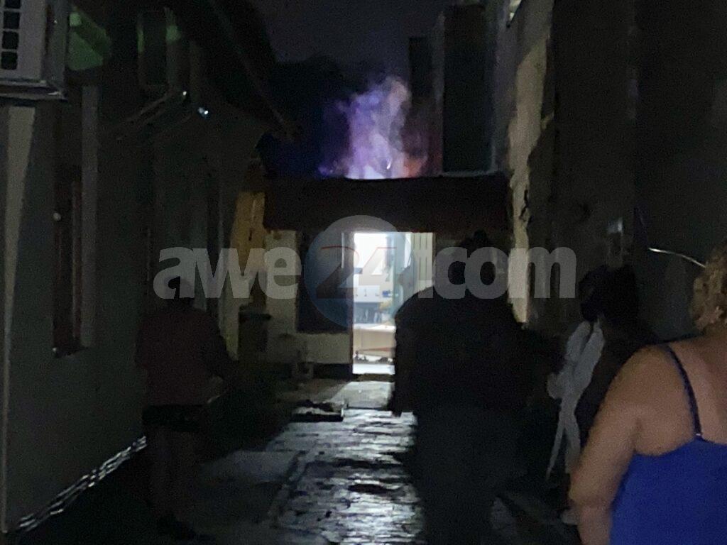Diamars anochi a drenta informe di cu tin un cas na candela banda di Watertoren na Oranjestad, mesora a dirigi tanto polis como bombero na e sitio. Na yegada di e patruya a bin nota cu e candela ta na un hoki patras di Office Centre den Concessielaan. Na yegada di bomberonan nan a cuminza un combate fuerte y a logra domina e candela. E apartamentonan hopi pega cu e casita/hoki a sufri daño di huma.