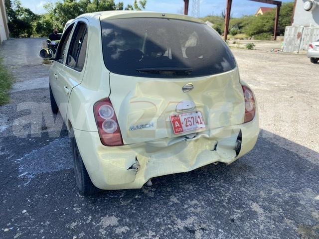 Diasabra mainta a drenta informe di un accidente cu hende herida dilanti di Ritz na Savaneta, mesora a dirigi tanto polis como ambulans na e sitio. Na yegada di e patruya a bin compornde cu e chauffeur di e pick-up a kita su atencion for di e trafico pa kita un musca cu a bin na su cara y e no a nota cu e auto su dilanti a para pa un otro auto mas dilanti baha for di caminda. Esaki a pone cu e chauffeur di e pick-up a purba brake pero ya tabata laat y toch a bay dal tras di e Nissan March den cual tabata tin 2 persona cu a resulta levemente herida. Na yegada di e ambulans nan a atende e 2 victimanan levemente herida na e sitio mes. Despues di e accidente e musca mes cu a ocasiona e accidente a bandona e sitio.
