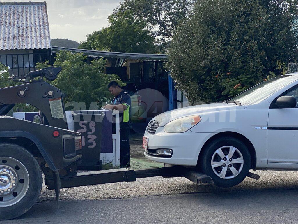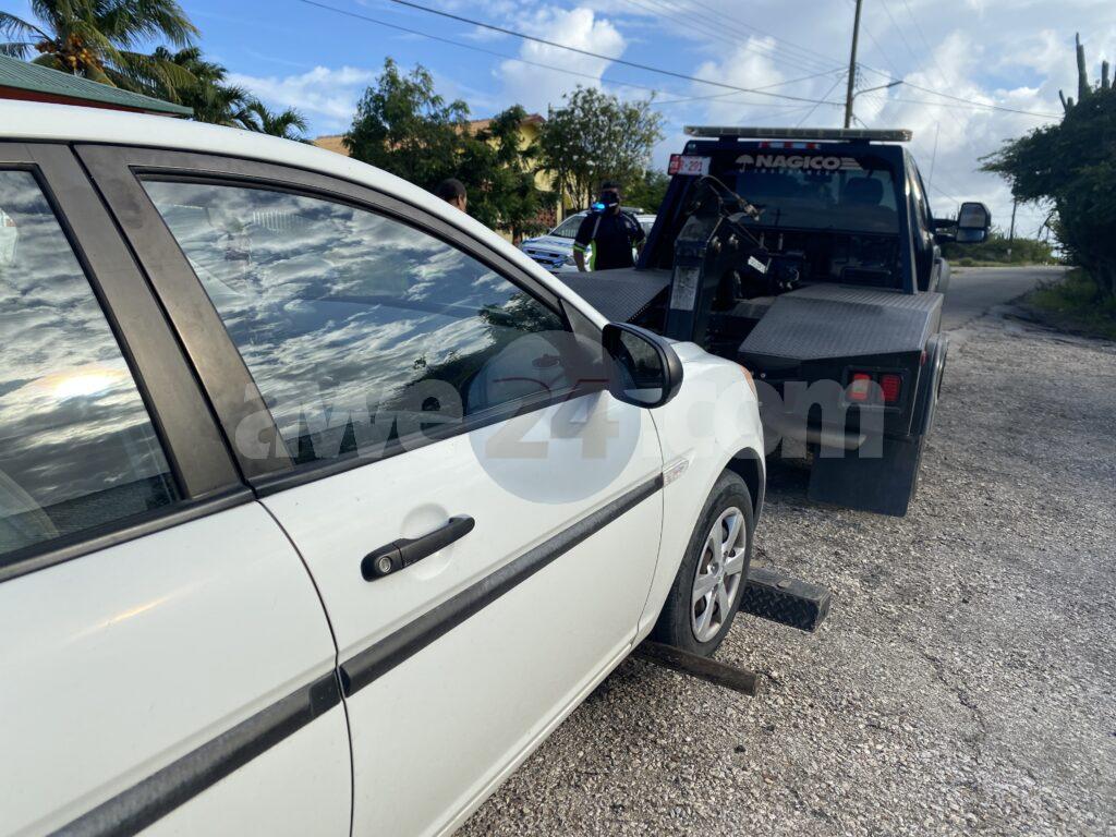 Dialuna atardi a drenta informe di cu tin un auto cu lo a ser laga atras dilanti di e garashi di un cas na Sabana Grandi, mesora a dirigi un patruya na e sitio. Na yegada di e patruya a bin haya un Hyundai Accent blanco para enberdad dilanti e garashi di un cas strobando e entrada y salida. Polis a purba busca rond pero no a emcontra cu e chauffeur y ora a controla e number a nota cu esaki ta pertenece na un iglesia. Mirando cu e tabata stroba y no por a haya e chauffeur a pidi pa takelwagen bin hal’e.