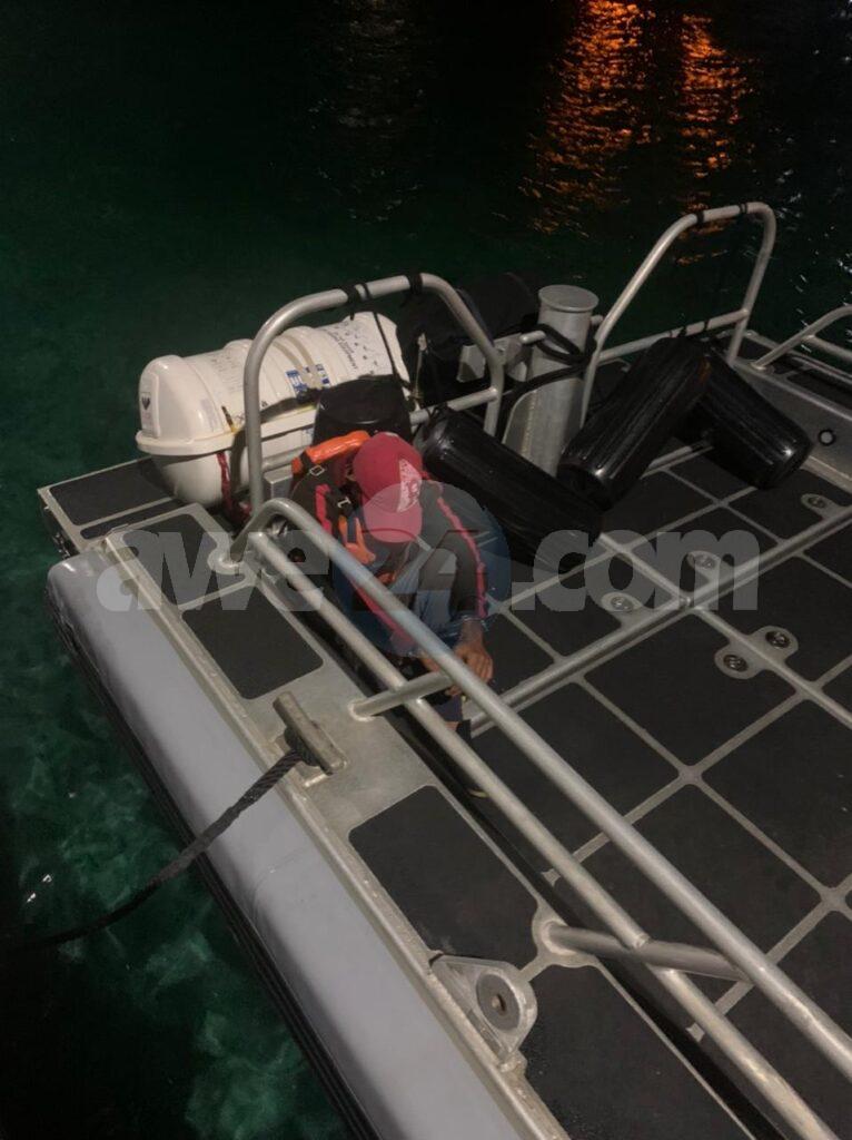 Na e mesun momento coleganan di Kustwacht a intercepta e boto ( Sin nomber y sin registracion) 3 miya zuid di cabes di Aruba bayendo back Venezuela.