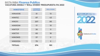 Na juni 2021 na momento cu DRH a traha su conseho pa Conseho di Minister, tabata tin 183 vacatura ‘roll-overs’ pa Presupuesto 2022. ‘Roll-overs’ ta vacaturanan presupuesta cu no por a wordo yena den e añanan anterior. Hopi biaha ta trata di funcion pa cual no a logra haya un persona cu e competencia of specialisacion necesario. E vacaturanan ‘roll-overs’ den aña 2022 ta consisti di, 15 vacatura den