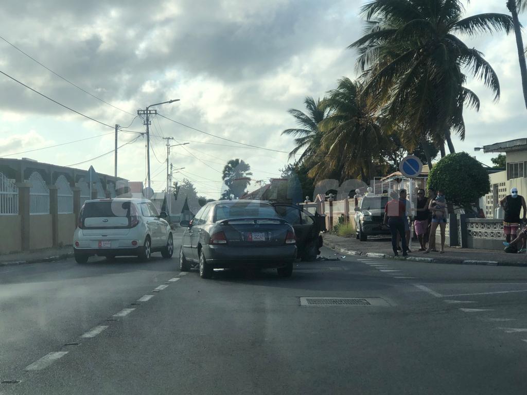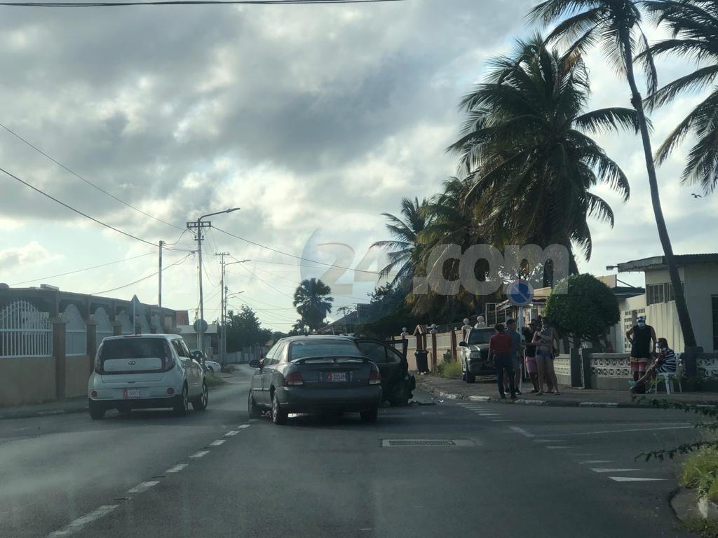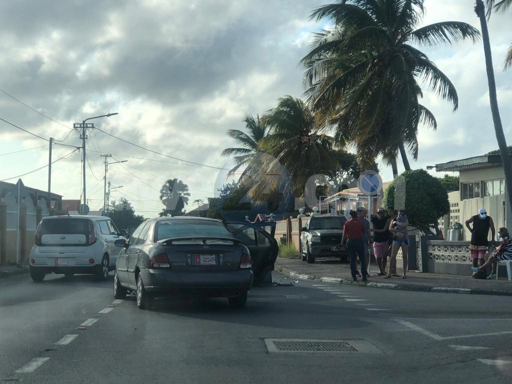 Diadomingo atardi a drenta informe di un accidente cu un persona herida na e cruzada Emmastraat cu Prof. Lorentzstraat, mesora a dirigi tanto polis como ambulans na e sitio. Na yegada di e patruya a bin compronde cu aki ta trata di un accidente pa falta di preferencia unda un Nissan Sentra biniendo for di nort den Emmastraat no a duna preferencia na un auto bayendo pabao den Prof. Lorentzstraat. E impacto tabata fuerte y un persona a resulta levemente herida, na yegada di e ambulans nan a atende e victima na e sitio mes.