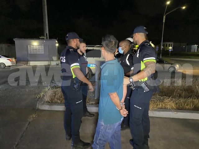 Diadomingo anochi mientras cu polis tabata atendiendo e accidente na e rotonde Sasaki, testigonan a pasa bisa polis cu auto a dal un persona un poco mas pariba na e rotonde chikito banda di Citgo Sasaki, mesora e patruya a bay mira kiko a pasa. A bin resulta cu aki ta trata di un Nissan March cu lo a dal un peaton. Informacion cu nos a logra acumula na e sitio ta cu e peaton lo a bay na un cas den cercania y a pidi un persona cu tabata bezig den e auto y a pidi un lift pero e persona cu tabata den e auto a nenga. Insistentemente e peaton a exigi pero a keda nenga di dun’e un lift, di rabia e peaton a insulta, causa un destruccion y pasa man bay cu un pertenencia y aki a sali bay su tras y poco mas pazuid a dal e peaton. Na prome instante e peaton no kier a ricibi atencion medico pero despues si. E peaton a bisa cu e chauffeur di e auto a menas’e y a dal e cu auto, polis mesora a detene e chauffeur di e auto y a confisca e Nissan March. Despues ora polis a haya sa cu e peaton mes ta esun cu a inicia tur e cos e peaton tambe a ser deteni. Ambos a ser deteni y hiba warda di polis den autonan separa. Departamento technico y forensyco a bini na e sitio y a pasa e investigacion pa recherche.