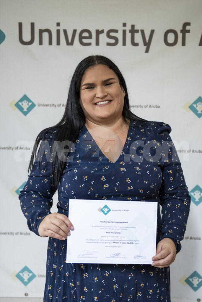 ORANJESTAD – Riba 14 januari 2022, a gradua di e Facultad di Ley na Universidad di Aruba, Rose-Ann Vrolijk.