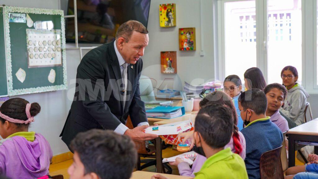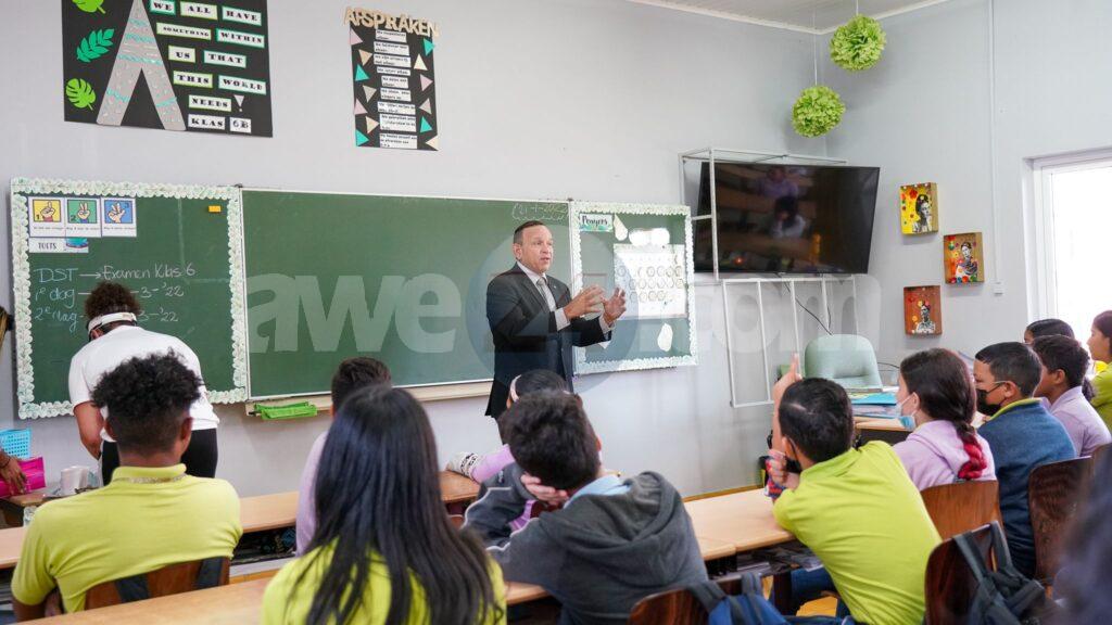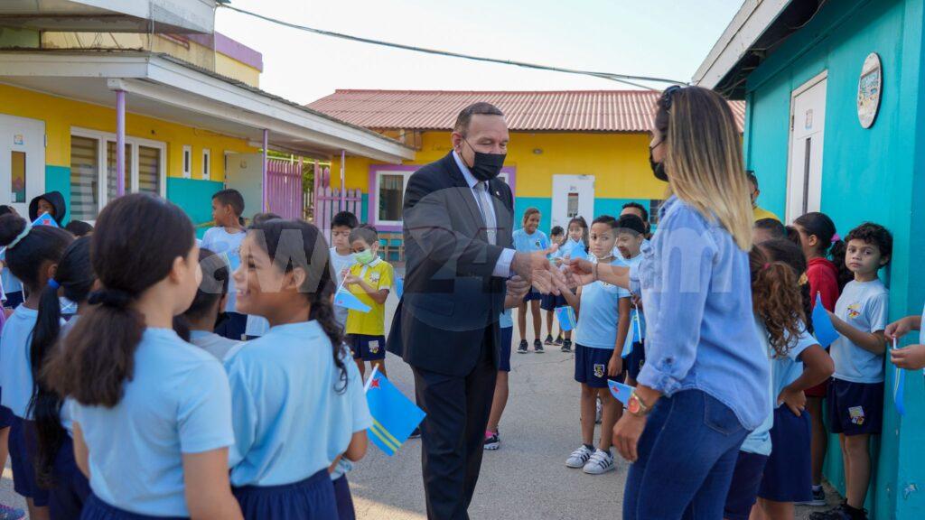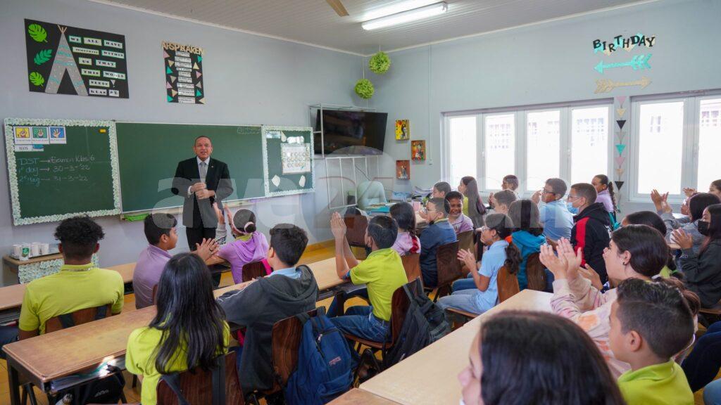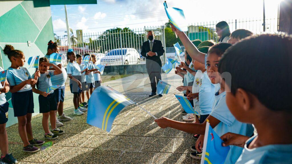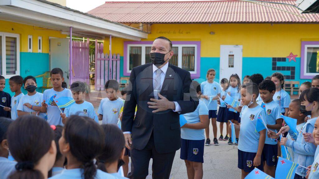 ORANJESTAD; Diabierna mainta Minister di Enseñansa y Deporte Endy Croes a bishita scol basico Colegio Ora Ubao na Tanki Leendert. E mandatario a wordo ricibi di un manera hopi special door di e alumnonan cu tabata para na entrada di scol cu bandera di Aruba den nan man. Durante e bishita Minister Endy Croes a comparti informacion di e historia, bida y trabou Betico Croes n’e alumnonan di e dos 6de klasnan. E meta ta p’e alumnonan conoce e historia y importancia di e lucha cu Betico a hiba pa henter e pueblo di Aruba pa por a logra e Status Aparte. Ta importante pa conoce e historia di Status Aparte. Betico Croes a unifica e pueblo aki a traves di bin cu un bandera y himno. E alumnonan tabata scucha cu hopi atencion, tabatin hopi pregunta. Na final nos a haci e alumnonan pregunta y remarcabel ta cu e alumnonan tabata sa caba diferente faceta di e historia.