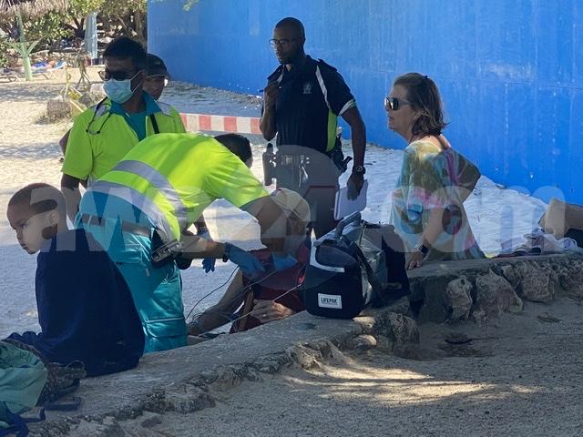 Dialuna mainta a drenta informe di cu un turista di edad canando na e strand a sak den otro banda di e post di strandpolitie, mesora nan a dirigi tanto polis como ambulans na e sitio. Na yegada di e patruya a bin compronde cu e homber a bira malo y a sak den otro. Familiarnan cu tabata cun’e mes a trese den sombra. Algun hoben local studiando prome auxilio y cu tabata na beach tabata tin un instrumento medico a duna prome auxilio. Na yegada di e ambulans nan a tuma over y a atende na e sitio mes.