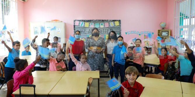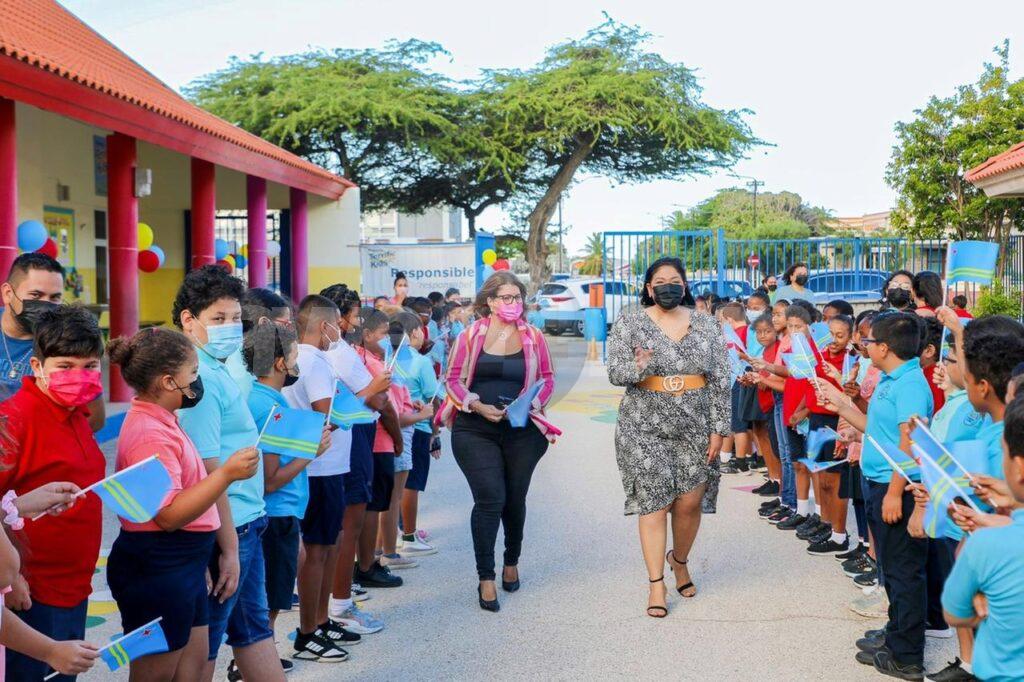 ranjestad – Diabierna mainta Minister di Cultura a bishita Dominicus College, esaki den cuadro di Celebracion di Dia di Betico 2022. E mandatario a splica e alumnonan e motibo di e celebracion y tambe a invitanan pa participa den e Competencia Virtual KibraCoco cual ta wordo organisa specialmente pa nosmuchanan di scol basico participa hunto cu famia, amplia nan conocimiento riba e historia di nos pais y gana premio riba Dia di Betico 25 di januari proximo. E programa lo pasa via nos canalnan di television Telearuba y Diario TV.