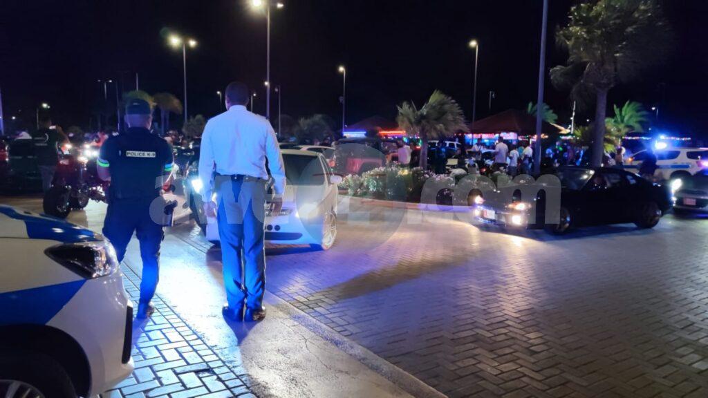 Diamars anochi polis cu control general a topa cu aglomeracion den e parking lot na Linear Park. Polis a core cu e persona nan for di e sitio. Esaki en conexion cu e leynan di calamiteiten verordeningen cu ta prohibi pa ta riba parkeerplaatsen despues di 7or di anochi.