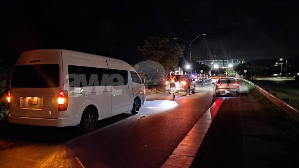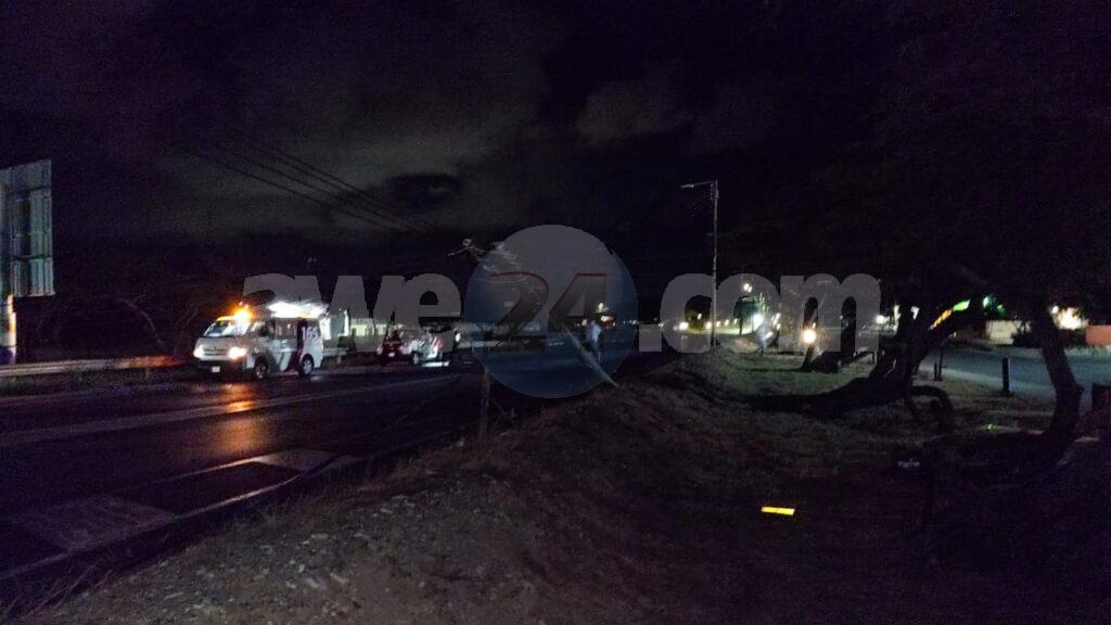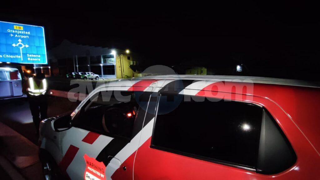 Diadomingo madruga a drenta informe di un accidente pariba di e rotonde Pos Chikito, mesora a dirigi patruya na e sitio. Na yegada di e patruya a bin haya e palo di lus kibra y waya di coriente colgando riba caminda pero e truck mes a somenta. Net na e momentonan ey 5 otro auto a haya daño door di e waya cu tabata colga. Tanto Elmar como Setar mester a presenta pa drecha e problema mientras polis a desvia e trafico.