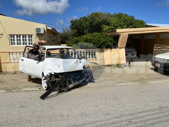 Diadomingo atardi a drenta informe di un accidente na Santa Cruz, mesora a dirigi un patruya na e sitio. Na yegada di e patruya a bin compronde cu aki ta trata di un accidente unda un damita sin rijbewijs bayendo pabao cu velocidad halto den un auto Toyota Starlet sin ningun papel na ordo a perde control y a bay dal basta fuerte riba e cura di un cas. Afortunadamente ningun hende a resulta herida.