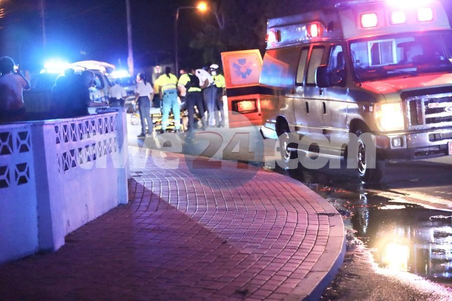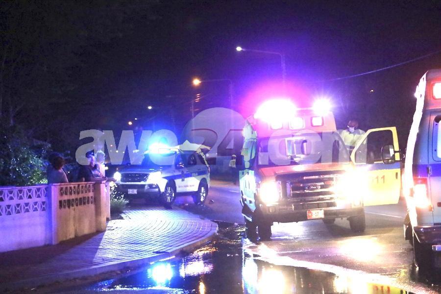 Riba 19 di januari 2021 un turista Mericano a wordo tira dor di Polis despues di un careda peligroso di Oranjestad pa Savaneta.