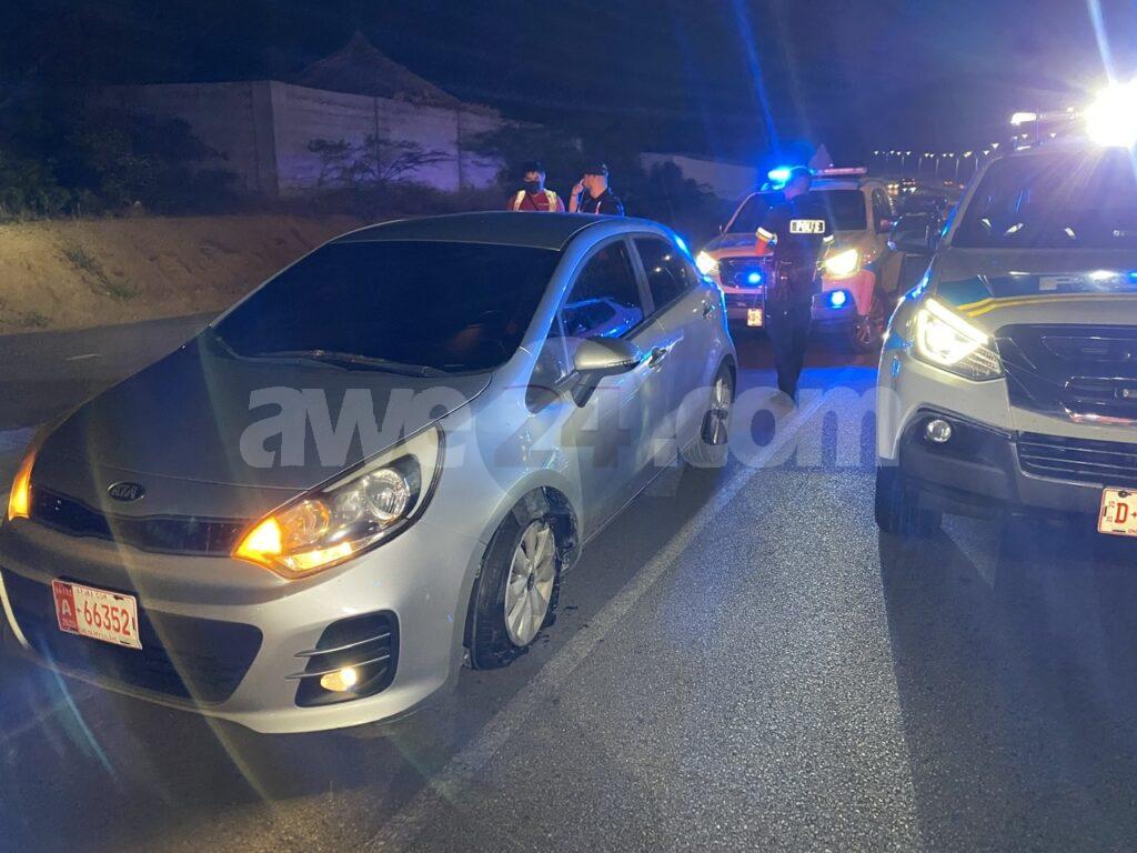 Diabierna mey anochi a drenta informe di cu un auto lo a subi e rotonde Sero Patrishi y a sigui bay zuid, mesora a dirigi patruyanan na e sitio. Na yegada di e patruyanan nan a bin topa cu e auto poco mas panort di e viaduct riba E.J. “Watty” Vos blvd. Eynan nan a atende cu e dama chauffeur, e dama no por a sigui mas pasobra e tire tabata tin un kap y ela cuminsa core riba ream. E rotonde tambe a haya daño.