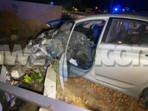 Diadomingo madruga a drenta informe di un accidente cu hende herida na Alto Vista, mesora a dirigi tanto polis como ambulans na e sitio. Na yegada di e patruya a bin compronde cu e damita manehando e auto a dal riba un piedra hopi cerca pero pafor di e caminda y esaki a pone perde control bay banda robez di caminda dal un cura di cas kibra. Tanto e damita chauffeur como e joven pasahero a bisa di no ta desea atencion di ambulans y a cancela esaki. Despues di un rato polis a bolbe pidi pa ambulans pa ambos ya cu e pasahero a dal su cabez na e windshield y e dimta a dal su pecho na e stuur unda a kibra un parti di e stuurwiel, na yegada di e ambulans nan a atende e victimanan.
