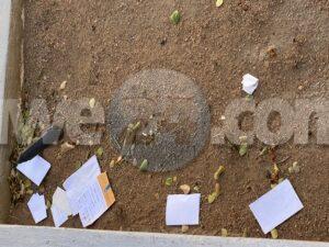 Diadomingo mainta a drenta informe di un hayazgo patras di oficina di Censo, mesora a dirigi un patruya na e sitio. Na yegada di e patruya a bin compronde cu desconocidonan probablemente adictonan ambulante lo a comete un of otro ladronicia y a bay laga esakinan despues di a coy placa cu lo tabata tin den esakinan. Polis a confisca esakinan y a hibe na warda di polis na Oranjestad y tin’e na disposicion di e respectivo doñonan.