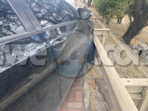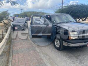 Diaranzon atardi durante patruya polis pasando den Paradera a bin topa cu un accidente na Paradera, mesora a nan a baha y atende esaki. A bin resulta cu e dama chauffeur di un Toyota Yaris bayendo direccion pariba no a regula su velocidad ni a mantene distancia a nota cu e ta bay dal tras di un pick-up lastrando un trailer/garoshi cu tanki awa y pa evita e impacto ela baha caminda subi acera dal vangrail y kibra un banda di lus di e trailer. Afortunadamente ningun hende a resulta herida.