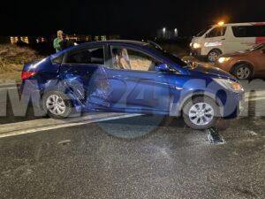 Diaranzon madruga a drenta informe di un accidente cu hende herida na e rotonde Sasaki, mesora a dirigi tantonpolis como ambulans na e sitio. Na yegada di e patruya a bin compronde cu aki ta trata di un accidente unda cu un chauffeur di Vwagen biniendo di nort cu velocidad halto riba caminda muha no a logra para na tempo y a slip bay accidenta riba un auto pasando riba e rotonde. Debi na e impacto tanto e chauffeur como tambe e pasahero den e auto pasando riba e rotonde a resulta herida. Na yegada di e 2 ambulansnan nan a atende ambos victima y a transporta nan pa hospital.