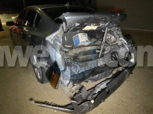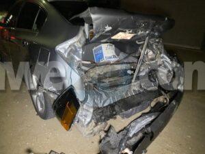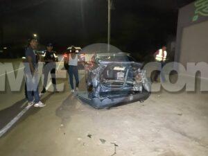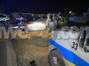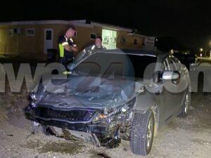 Diasabra madruga a drenta informe di un accidente cu impacto basta fuerte yegando e rotonde PaperClip for di Paradera, mesora a dirigi patruya na e sitio. Na yegada di e prome patruya a nota marca di hopi azeta riba caminda y a bin haya un auto Nissan Teana cu e parti patras di e auto completamente destrui y siguiendo e mancha di azeta otro banda direccion Oranjestad un Kia K5 full kibra dilanti. Na prome instante a mira pero no a haya e chauffeur den e auto parti dilanti pero sinta patras a haya e chauffeur “pata pata OFF OFF” na soño cabes colgando dilanti. Polis a pasa hopi trabao pa lante y a detene pa ta bao influencia di alcohol. E chauffeur di e otro auto tambe tabata bao influencia a ser deteni tambe. Ambos a bay den e mesun vehiculo di transporte pa warda di polis. Pa locual ta e accidente mes esaki a pasa net e Teana a slow pa e drempel y e Kia K5 a dal e fuertemente te drenta un parti bao di e Teana. Afortunadamente ningun hende a resulta herida pero ambos vehiculo a keda na werki.