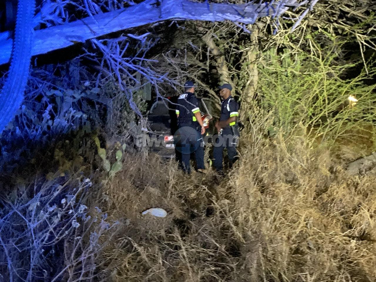 Diasabra madruga a drenta informe di un accidente na Boegoeroei, mesora a dirigi un patruya na e sitio. Na yegada di e patruya a bin compronde cu aki ta trata di un accidente unda cu un auto a bini cu velocidad dal tras di un Suzuki Swift y mande bay den mondi. Debi na e impacto e chauffeur a resulta herida. Como cu e ambulansnan tabata hopi ocupa a tarda pa bay atende e chauffeur herida.