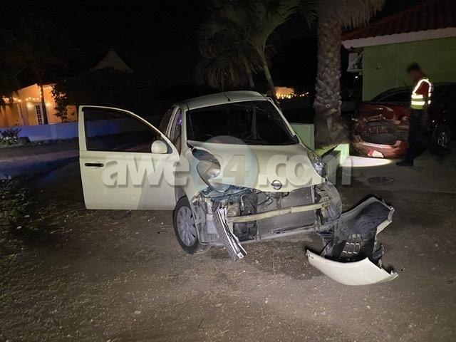Diasabra madruga a drenta informe di un accidente cu hende herida na Kudawecha, mesora a dirigi tanto polis como ambulans na e sitio. Na yegada di e patruya a bin compronde cu aki ta trata di un accidente unda cu e chauffeur di un Nissan March bayendo pariba cu velocidad halto a perde control na e subida/birada baha caminda na man drechidal tras di un auto stacion y finalmente bay dal fuertemente den banda di pasahero riba un pilar di cura. E impacto tabata fuerte te a fractur pia di e pasahero. Na yegada di e ambulans nan a atende e pasahero herida y a transporte pa hospital. Polis a detene e chauffeur cu a ocasiona e accidente aki.
