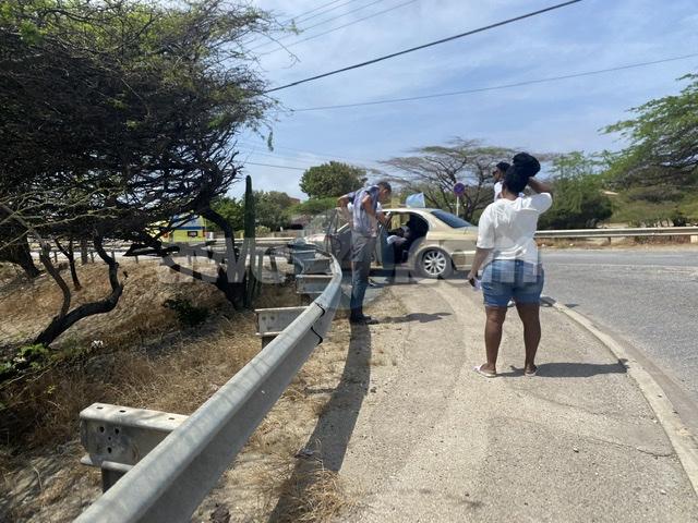 Diasabra atardi a drenta informe di un accidente cu un hende herida na e cruzada di sero Biento, mesora a dirigi tanto polis como ambulans na e sitio. Na yegada di e patruya a bin compronde cu e chauffeur a bira malo y a bay na man robes y su so cu sus so a bay dal riba e vangrail. Na yegada di e ambulans mesora a atende e victima y a transporte pa hospital.