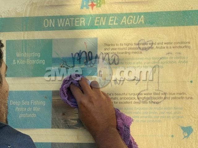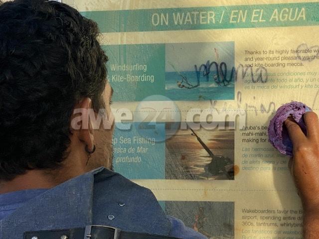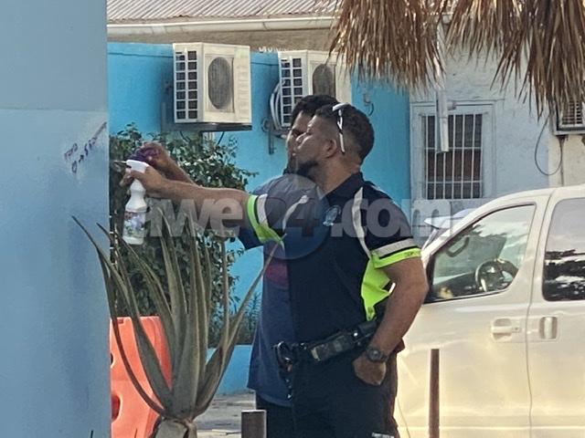 Dialuna mainta a drenta informe di cu tin un adicto ambulante cu ta scirbiendo cu permanent marker cosnan vulgar na propiedad priva y tambe mustra su parti intimo na muchanan chikito banda di Botica Oduber, mesora a dirigi un patruya na e sitio. Na yegada di e patruya a bin compronde cu aki ta trata di e conocido adicto ambulante C.G. cu a mustra su parti intimo na 2 mucha chikito cu tabata cana cu un dama y e dama a zundra y core bay pero polis a haya sa di e fechoria di scirbi e cosnan na muraya y propiedad priva. Polis a topa cu e ambulante y a pone haci e cosnan cu ela scirbi limpi y a solicita presencia di e vehiculo di transporte pa asina hiba e adicto pa Respaldo.