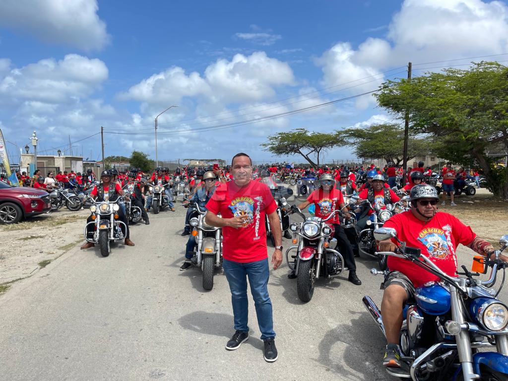 ORANJESTAD: Diadomingo ultimo den ora di maintaMinister Endy Croes tabata presente na Bucuti Yacht Club pe di 25 corida di Himno & Bandera organisa pa CamacuriHarley Davidson Club. E Mandatario a hiba palabra y asinaduna inicio ne recorido cu ya ta un tradicion y a conta cu un acogida hopi grandi di participacion. E recorido a sali di diBucuti Yacht Club y a finalisa na Carnival Village na San Nicolas.