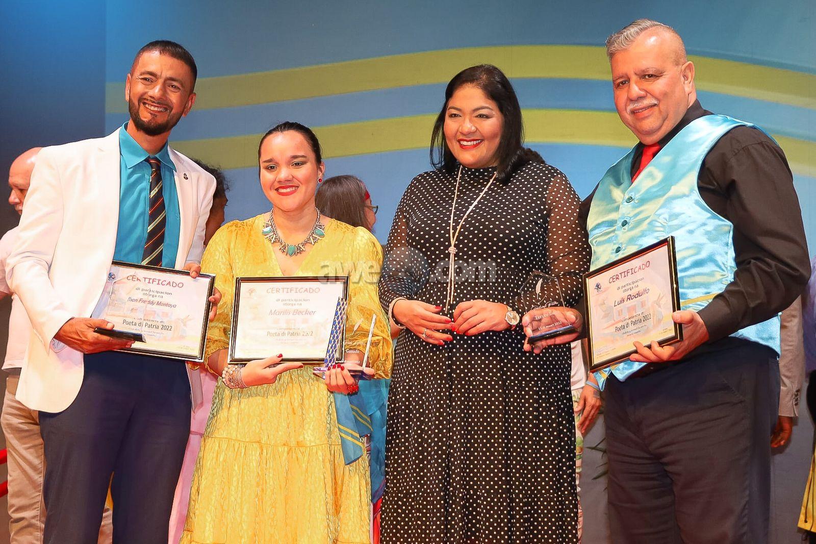 Den un sala cu un publico grandi, e resultado di e competencia a wordo anuncia como ganado absoluto Poeta di Patria 2022 Marilis Becker cu su poesia “E piesa di Encanto”, na segundo luga a resulta Jhon Freddy T. Montoya cu su poesia “Mi kier ta”y na tercer luga Luis Rafeal Rodulfo cu su poesia “Aruba Nos Herencia”. Tabata un honor pa Minister di Cultura entrega e premio na e ganado di Poeta di Patria 2022. Director di Departamento di Cultura Sr. Dumfries y Sr. Flemming President di Comision Celebracion Dianan Nacional a entrega premio na e segundo y tercer luga. Tur particpante a ricibi un certificado y tambe un buki cu tur e poemanan cu a participa den e competencia.