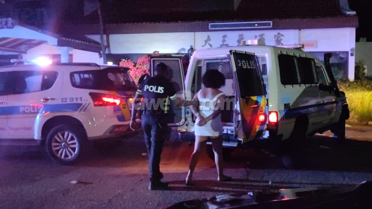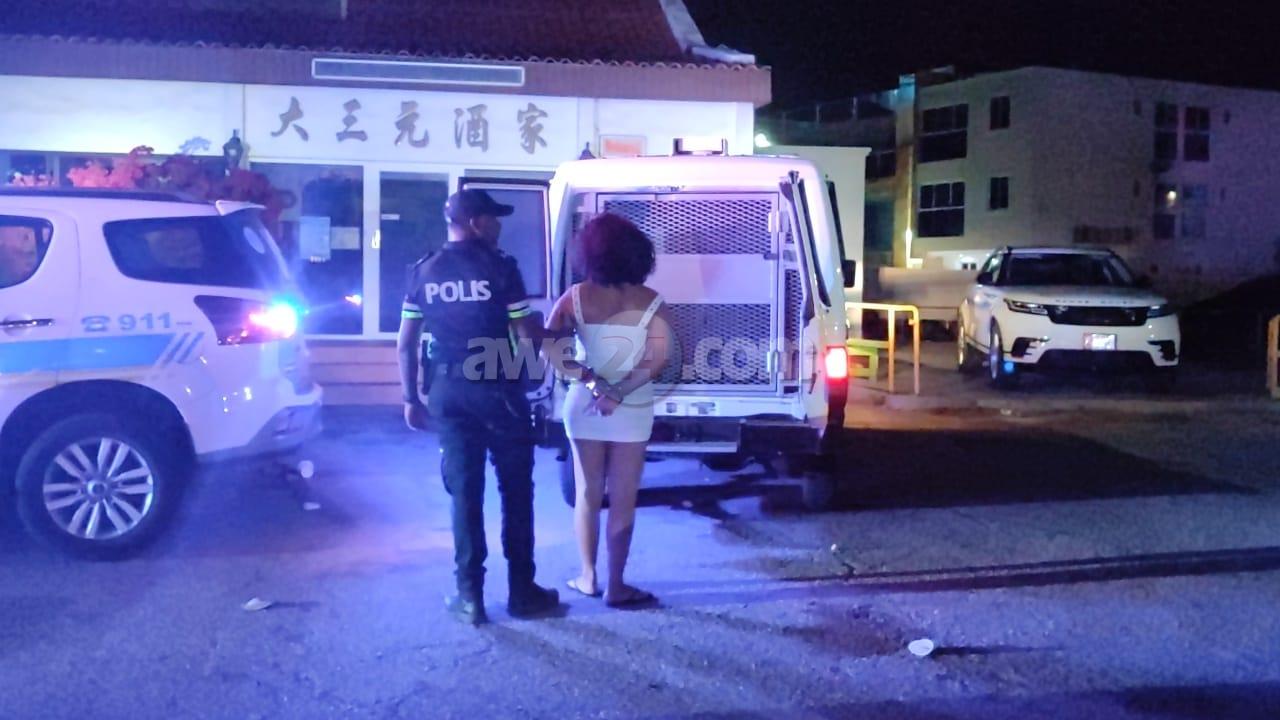 Tur cos a cuminsa unda a drenta informe di un persona canando cu un arma di candela banda di Lekker Bar & Restaurant, mesora a dirigi patruyanan di Noord na e sitio. Na yegada di e patruya nan a bin haya nan mes cu un situacion escalante di un pelea formal unda nan lo a manda un klinker riba un persona y herida esaki pero e persona a subi auto y bay. Na e mesun momento eynan a drenta informe di cu un dama habla spaño a yama biisa cu lo tin un homber malamente agredi benta den e parti patras banda di e carwash den cercania, segun e dama e no sa si e homber ta bebi of no ta duna señal di bida, mesora a patruya cu tabata eynan a hala bay mira wak si ta encontra cu e victima aki. Pero despues di un control na full e area no a encontra cu ningun hende herida. E ora ey a start un pelea formal entre 2 muher y situacion a bay for di man ya cu tur hende a bosha riba otro y a pidi refuerso tanto di Oranjestad, Santa Cruz y Sanicolas. Hasta e hefe di distrito 2 tambe a bay na e sitio. Polis a logra detene e 2 damanan cu a bringa cu otro. Despues cu e refuerso a yega a core cu tur hende for di e sitio y e situacion a calma y e respectivo patruyanan por a regresa nan distrito y esunan di Noord a bay warda di Shaba cu e 2 damanan deteni.