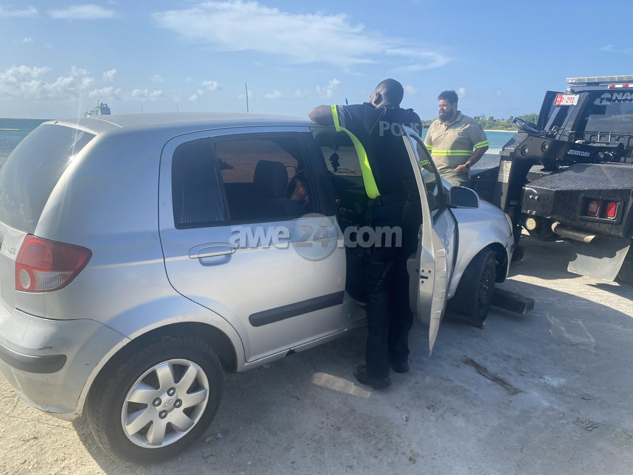 Diaranzon atardi durante patruya polisnan atento a nota un auto sospechoso laga atras banda di e bakinan di sushi di Renaissance Island, mesora controla e vehiculo y esaki no tabata cuadra esey hunto cu un bentana kibra tabata suficiente pa confisca e vehiculo aki. Mesora a solicita un takelwagen y esaki a bini tow hiba e auto pa warda di polis.